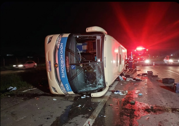 Acidente na BR-364: Ônibus tomba e deixa dois feridos em Cuiabá
