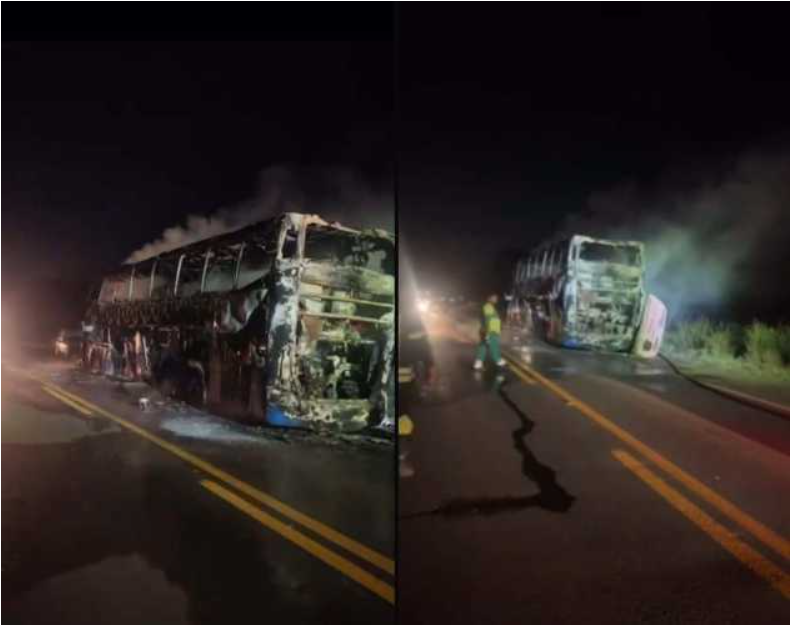 Um veículo da Viação Juína, que fazia a linha de Juara rumo a Cuiabá, foi completamente destruído por um incêndio na madrugada de 3 de janeiro de 2026, na rodovia MT-358, a aproximadamente 20 km da entrada de Tangará da Serra (MT). O fogo começou por volta das 4h, e felizmente todos os cerca de 45 passageiros conseguiram evacuar o ônibus a tempo, sem nenhum ferido.De acordo com relatos preliminares, as chamas iniciaram na região traseira do veículo, possivelmente devido ao rompimento de uma mangueira que vazou fluido sobre o motor quente, propagando-se rapidamente e consumindo todo o interior.Os Bombeiros Militar foram chamados imediatamente e atuaram para extinguir o incêndio, garantindo a segurança da pista. A concessionária Via Brasil, responsável pela administração daquele trecho da rodovia, também enviou equipes para sinalizar o local, prestar assistência e auxiliar no atendimento à ocorrência.Embora ninguém tenha se machucado, todas as bagagens e pertences armazenados no compartimento inferior do ônibus foram perdidos nas chamas. As causas exatas do incidente ainda serão investigadas pelas autoridades competentes.