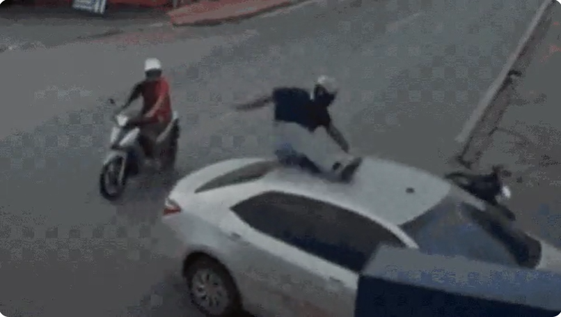 Um jovem de 22 anos, que pilotava uma motocicleta Honda Start preta, colidiu frontalmente com um Toyota Corolla prata conduzido por um idoso de 77 anos. O motorista do carro acessava a avenida principal a partir da rua Napoleão José da Costa, cruzando a via, quando ocorreu o impacto.Com a força da batida, o motociclista foi violentamente arremessado da moto e acabou caindo sobre o teto do veículo, onde permaneceu até a chegada do socorro. Um vídeo circulando nas redes sociais registra o momento exato da colisão e da projeção do jovem, mostrando a violência do impacto.