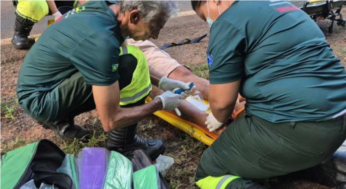 De acordo com informações preliminares, o condutor da motocicleta perdeu o controle do veículo, que capotou diversas vezes até colidir contra uma árvore às margens da rodovia. O impacto foi violento e resultou em lesão grave no pé da vítima.